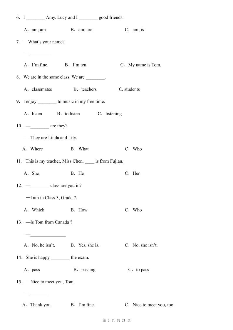 七年级上英语第1次月考卷(仁爱版)-咖脉互联