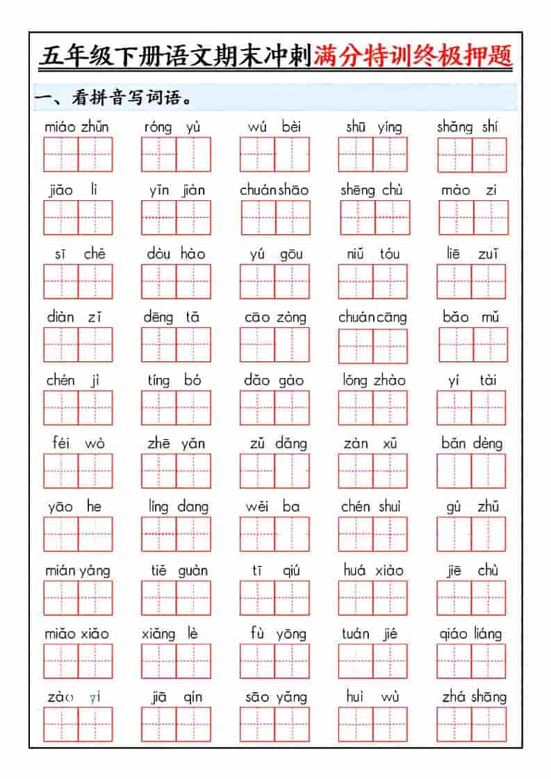 五年级下语文期末冲刺满分特训终极押题-咖脉互联